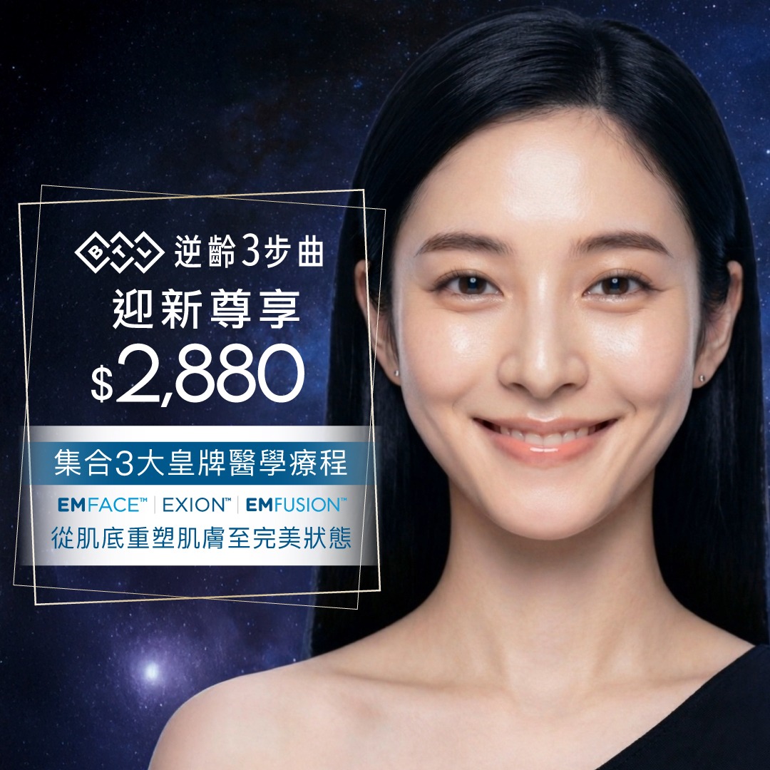 1.迎新尊享$2880(EMFACE+EMFUSION+EXION),只適用於從未享用過此療程之客戶,限購一次
